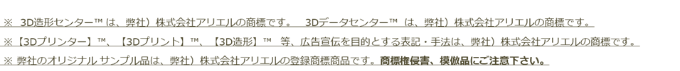 E-Mail:03-6868-7617@ariel-co.com 3Dプリンター試作品製作事例など 【facebook】アリエル 3D造形 工場直販「匠」